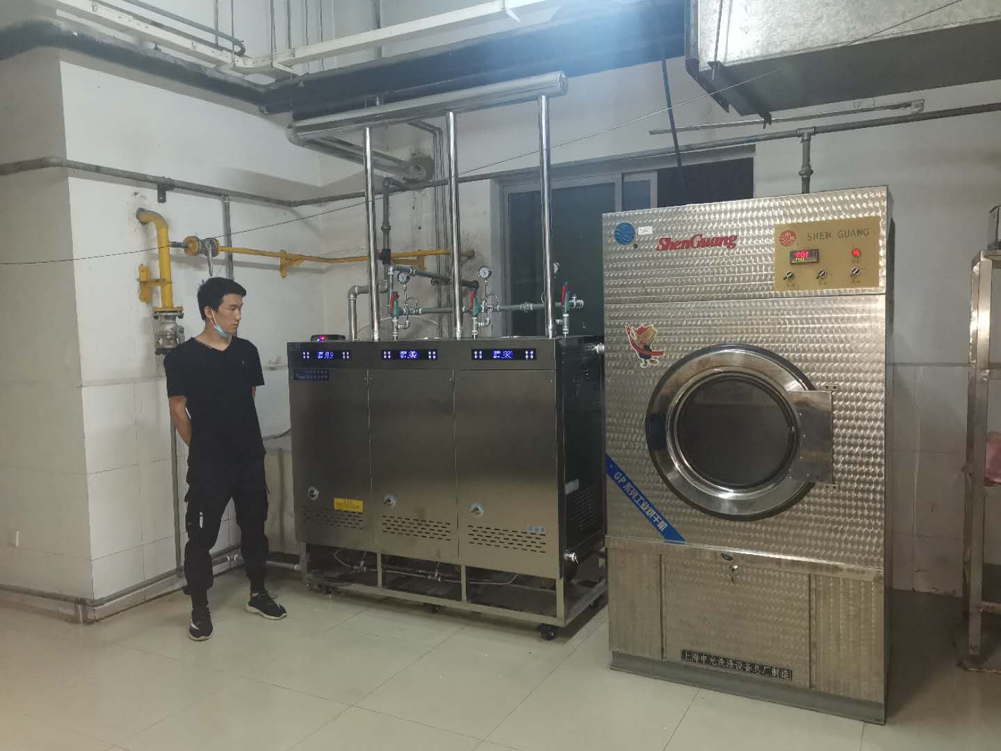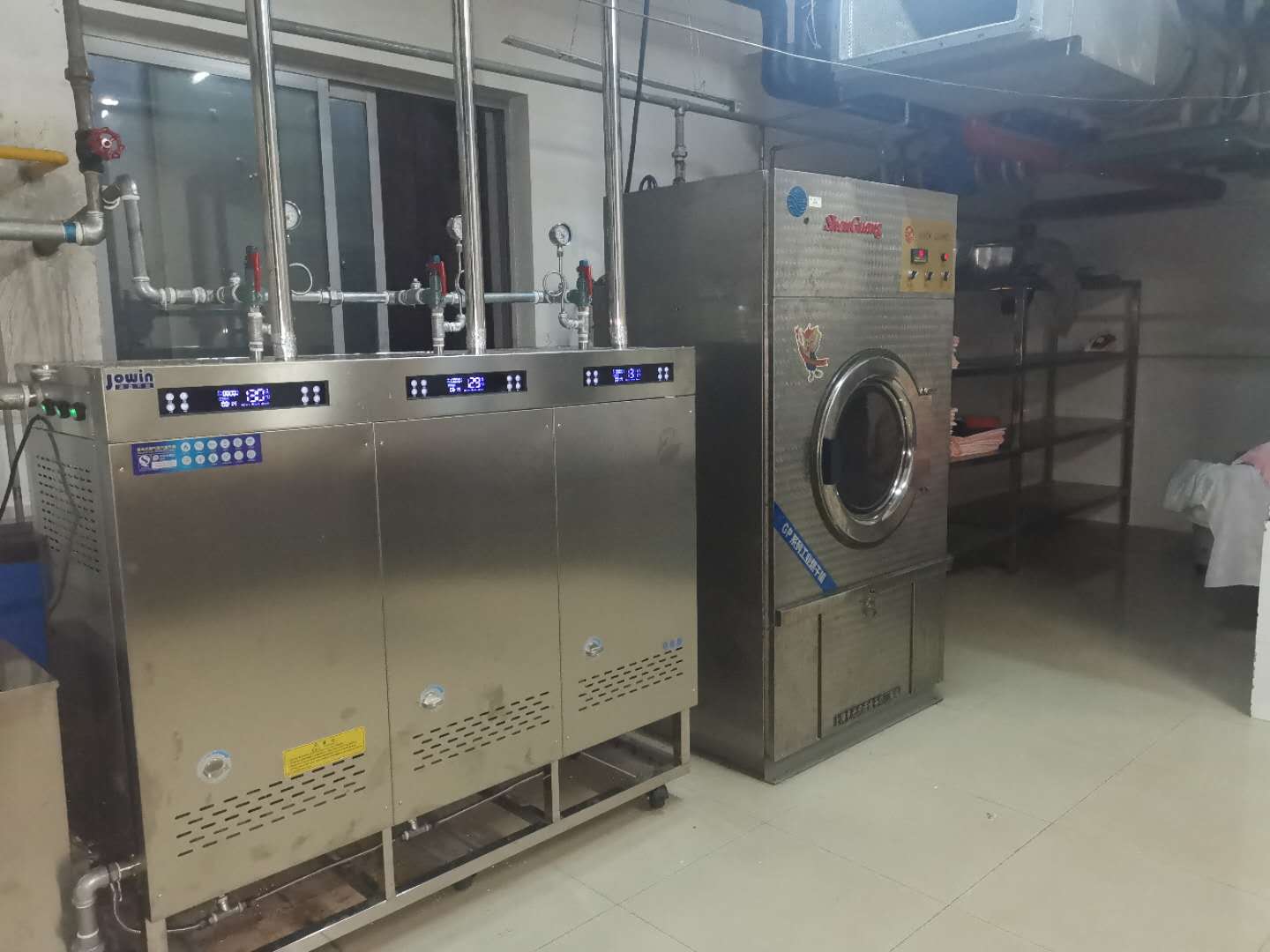 北京理工大學(xué)洗衣房,采用卓益三膽模塊蒸汽發(fā)生器為烘干機提供蒸汽,蒸發(fā)量高達(dá)200KG/H,承壓4公斤,蒸汽溫度最高可達(dá)150℃。