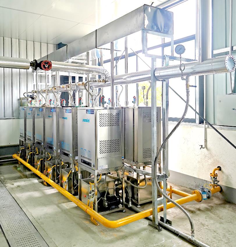 卓益商用模塊式蒸汽發(fā)生器,主要用于傳統(tǒng)蒸柜的節(jié)能改造,產(chǎn)品采用模塊化結(jié)構(gòu),大大提高了設(shè)備的可靠性。整機(jī)由燃?xì)怆姶砰y(可人工調(diào)節(jié)控制火力大小)、燃燒器、電子點(diǎn)火器、水泵、316不銹鋼管換熱器、水位控制箱、強(qiáng)排抽風(fēng)機(jī)、智能控制總成等要件構(gòu)成。運(yùn)用最新燃燒換熱技術(shù)設(shè)計(jì)制造,一鍵操作,智能控制,可使用液化石油氣、天然氣、人工煤氣等氣體燃料,快速地的產(chǎn)生大量連續(xù)蒸汽。設(shè)備自動(dòng)運(yùn)行,可單機(jī)或多機(jī)組合使用,是替代傳統(tǒng)鍋爐和傳統(tǒng)加熱設(shè)備或節(jié)能改造的最佳產(chǎn)品。