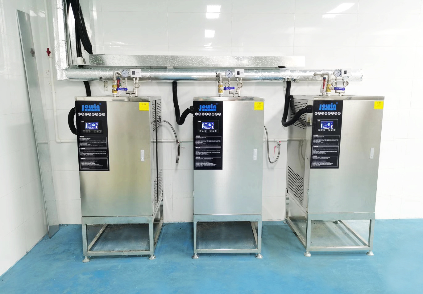 蒸汽量:25~100kg/h 尺寸:600*600*1050mm 蒸汽壓力:0.7MPa壓力保護,大顯示屏,三檔電熱可調,自動進水,體積小,安裝方便,無噪音,節能環保,可單臺或多臺并聯安裝,蒸汽發量大